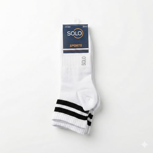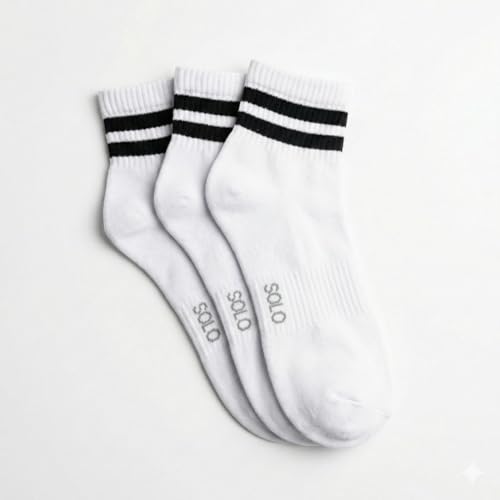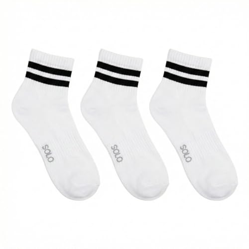 SOLO - Solo Cotton Ankle Socks, White with Black Stripes, 3-Pack Pele