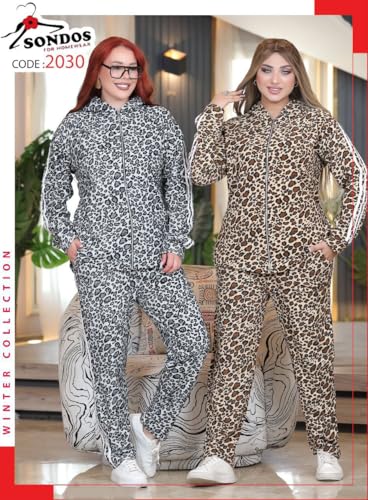 SONDOS FOR HOMEWEAR - Sondos Women's Winter Trung - Tiger Pulled Velvet Full Athletic Set - Capishu Sweatshirt and Pants - Elastic Fit 60KG to 90KG