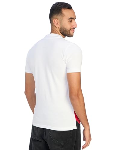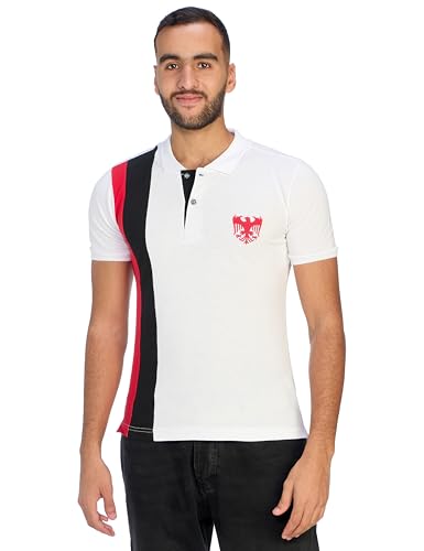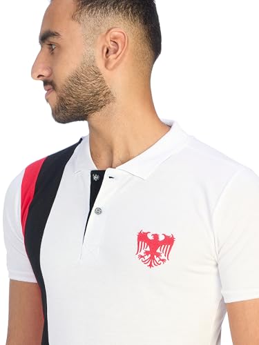 Sotex - SOTEX Men's Fashion Design Polo Shirt, S/S With Embroidery,With Left Long Strip Size M,White,Black & Red