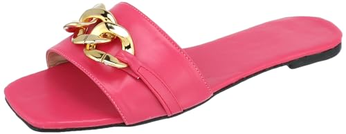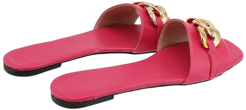 AUUXVA - SOUL 2 SOLE Squared toe flat slipper with a simple chained strap,FUCHSIA, 39 EU