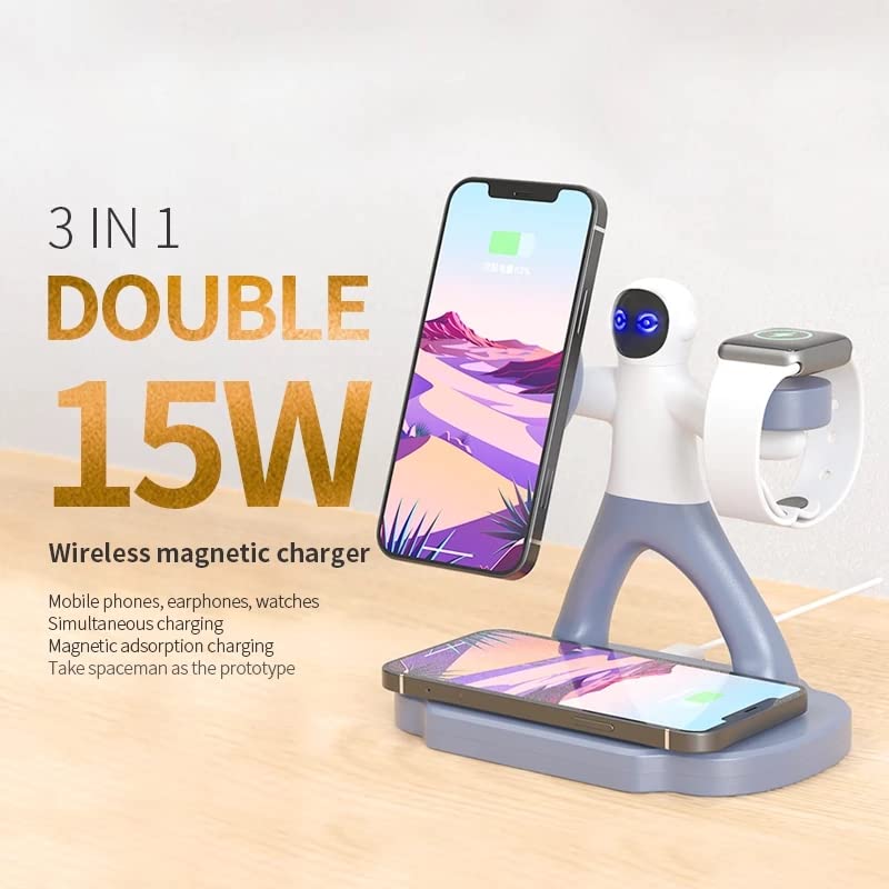 Generic - شاحن لاسلكي مغناطيسي من سبيس مان، أسود، عدد 10
