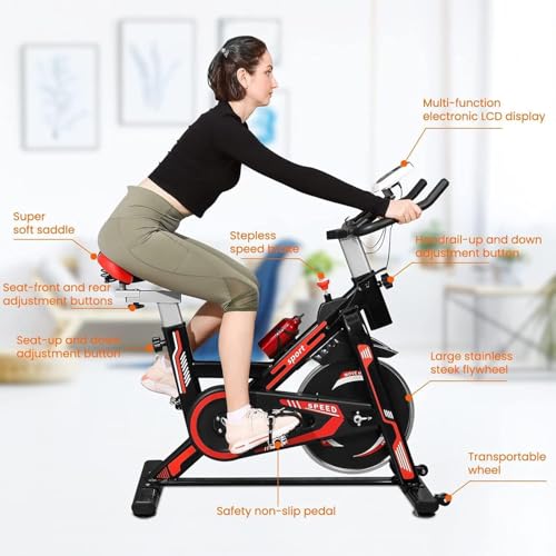- Stable Speed Bike features a display that shows bicycle standards and allows you to change settings. This bike is designed with a padded and adjustable seat that provides maximum comfort. It has handles for good grip and ensure a safe and stable ride.