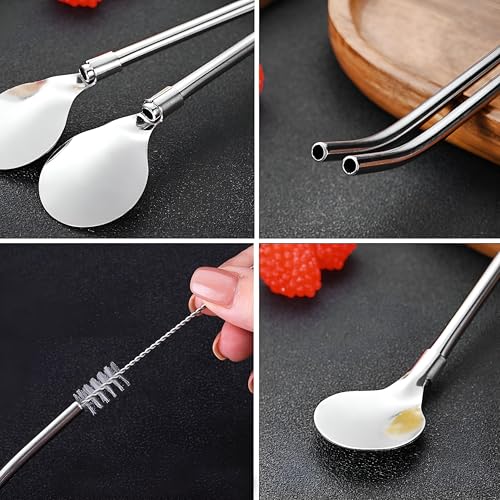 - Each 8.7-inch spoon serves a dual purpose as a drinking straw, making it ideal for enjoying juices, cocktails, or your favorite beverages. This unique feature adds convenience and flair to your drinking experience.