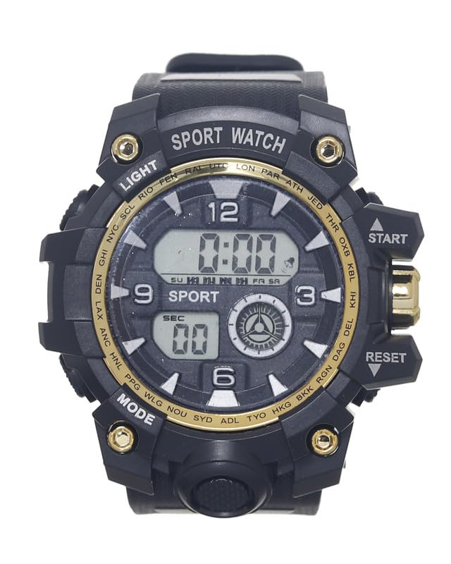 Generic - Sport Digital Large Dial LED Silicone Unisex Watch Sport-W-26, Black and Gold