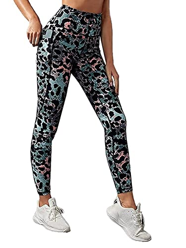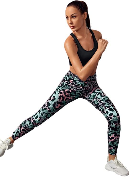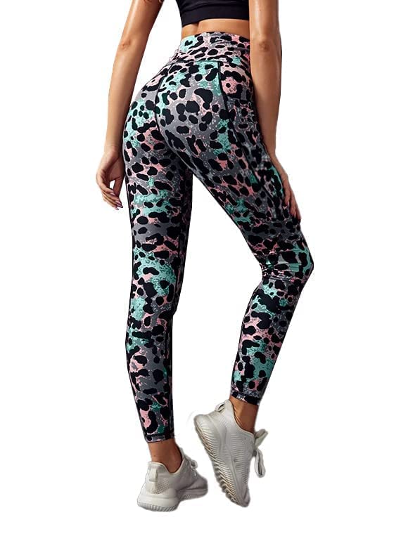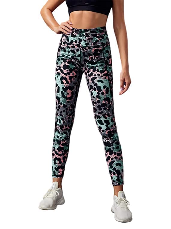 Nileton - بنطلون رياضي مطبوع - سروال ضيق عالي الخصر بجيب جانبي - للنساء