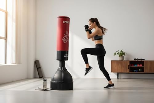 SportQ - SportQ Stand Up Punching Bag Without Hanging – Training Bag for Boxing, Kickboxing, Reflex, and Kickboxing – Stable, Packable Base – Home Cardio & Strength Training for Men & Women