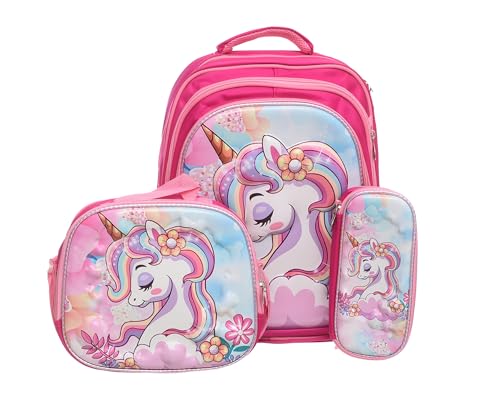 Elmaayergy - ST-2 3-Piece School Backpack Set, Large School Bag with 3 Zippers, Matching Lunch Bag & Pencil Case, Durable & Lightweight for Kids & Students 3D