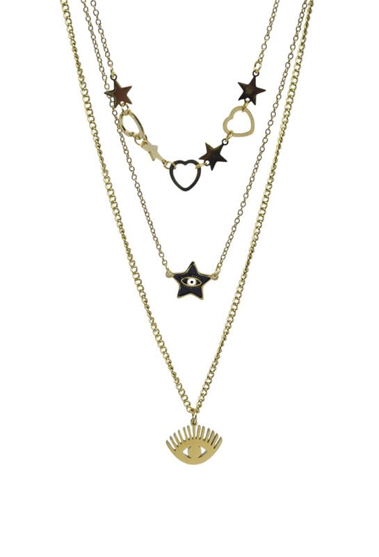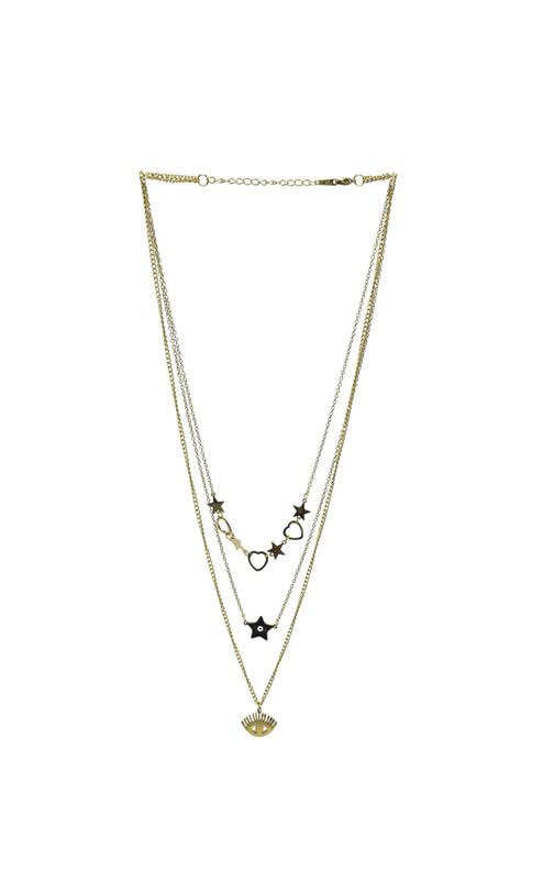 Generic - Stainless Steel Third Necklace With Multi Design For Girl - Gold