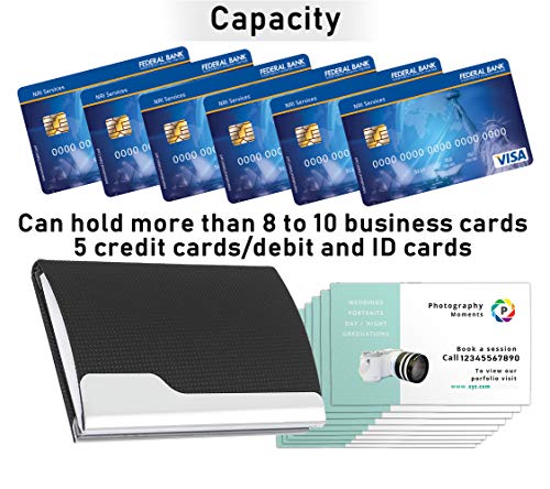 - اللون: أسود، حامل البطاقات مصنوع من جلد البولي يوريثين عالي الجودة ومادة الستانلس ستيل.