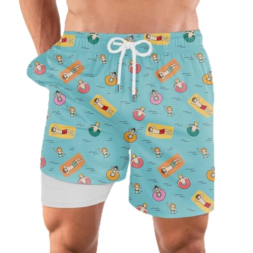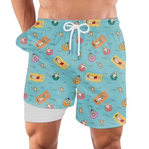 Generic - Summer Fun Printed Polyester Waterproof Swimming Wear, Blue.