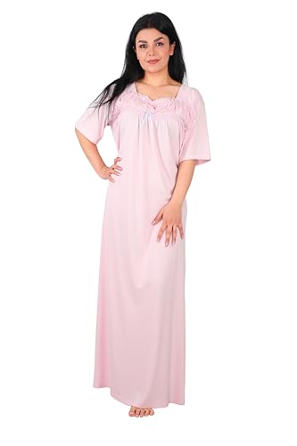Dadoush - Summer Long Nightgown Short Sleeve Nightgown Women Nightgown Perfect for Daily Use (PINK, XL)
