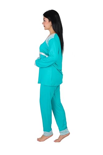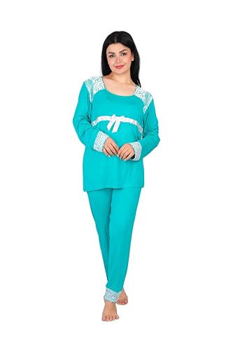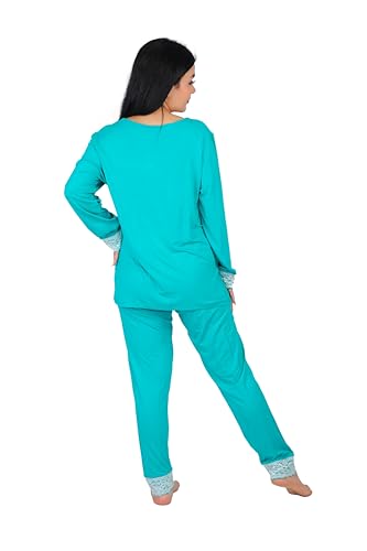 Dadoush - بيجامة صيفية باكمام طويلة - طقم بيجامة حريمي نسائي من قطعتين