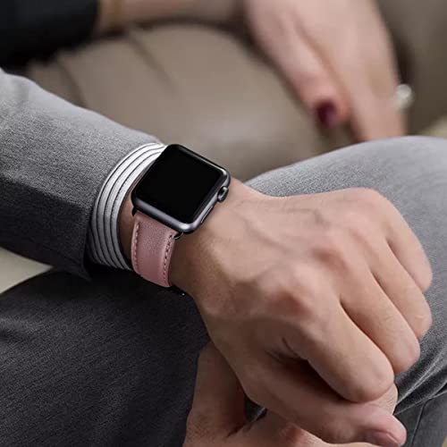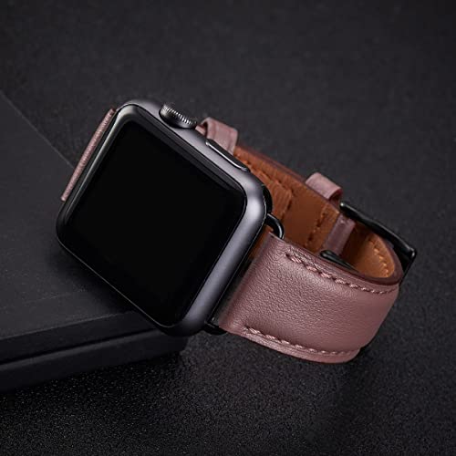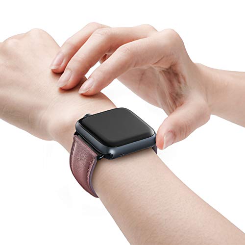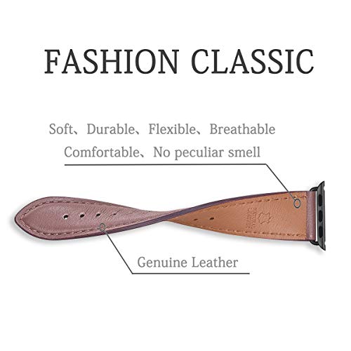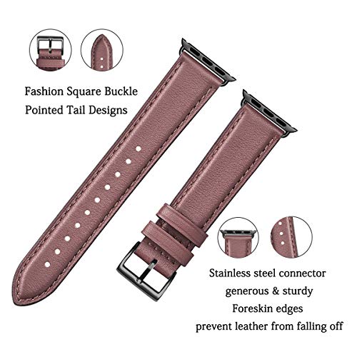 SUNFWR - SUNFWR Leather Bands for Apple Watch Strap 41mm 40mm 38mm,Men Women Replacement Genuine Leather Strap for iWatch SE Series 7 6 5 4 3 2 1 Sport,Edition(38mm 40mm 41mm, Smoke Purple&Black)