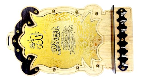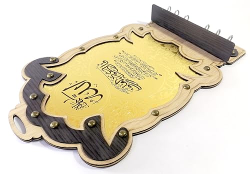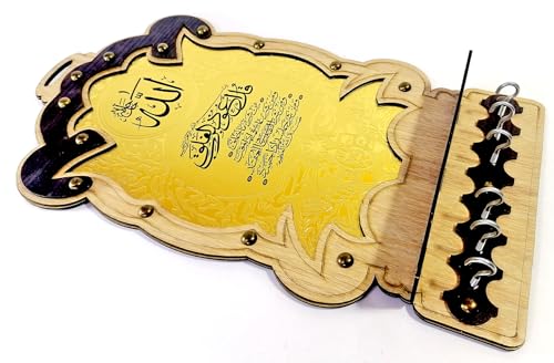 Generic - حامل و حله مفاتيح خشب حفرة شرنية (Surah Al-Falaq) لون بني فاتح بني غامق لون نحاس اسلامي خشبي مفتاح حامل