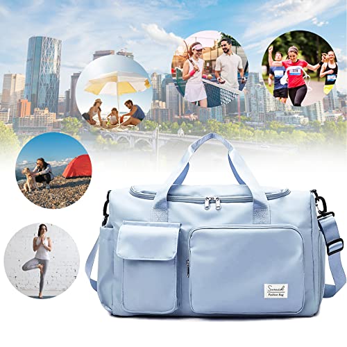 Suruid - Gym Sports Duffle Bag Travel Carry on Hand Luggage Bag Overnight Bags for Womens and Mens Large Capacity with Wet Pocket and Shoes Compartment Lightweight Light Blue