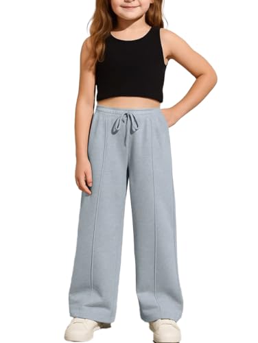 Nileton - بنطلون رياضي بأرجل واسعة مع خط للأطفال والمراهقين - خصر مرتفع - بنطلون برباط وجيوب جانبية للبنات - بنطلون رياضي كاجوال فضفاض - ملابس رياضية للارتداء اليومي
