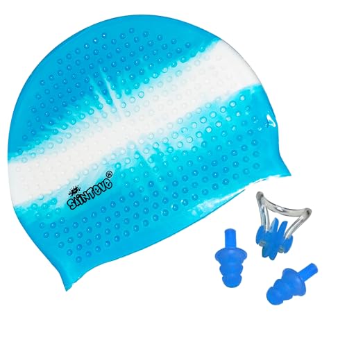- Complete Swimming Set: Includes 1 high-quality silicone swim cap, 1 nose clip, and 2 ear plugs – everything you need for a better swimming experience.