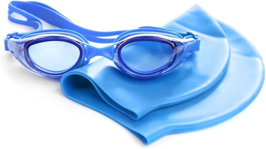 Generic - Swimming Goggles and Cap Set, Anti-Fog Lenses, Blue. +3