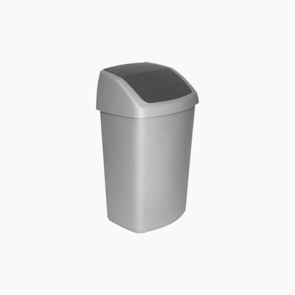Generic - سلة مهملات بلاستيك بغطاء متأرجح سعة 15 لتر، لون فضي رمادي