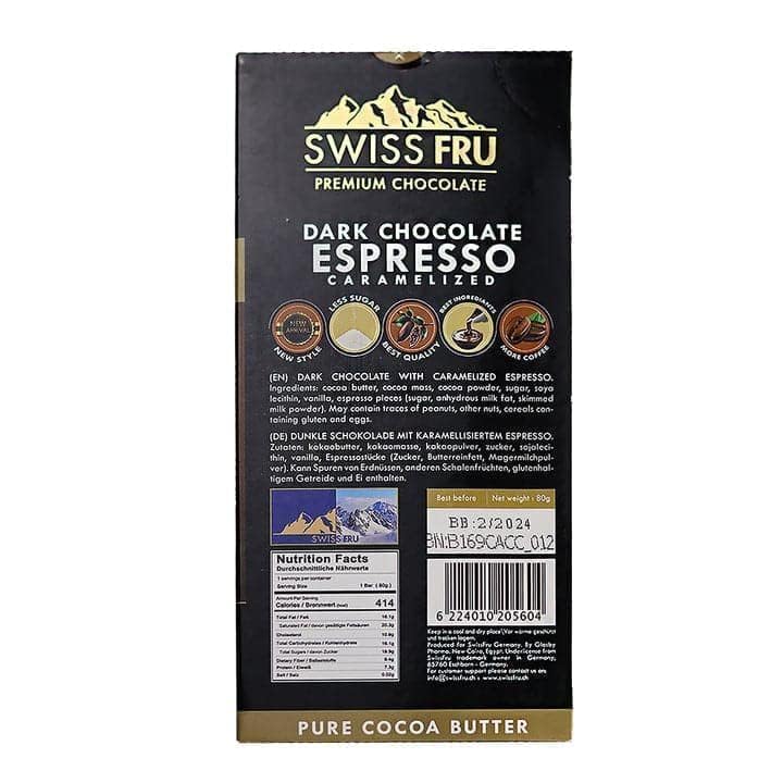 - Swiss Fru - Premium Dark Chocolate - Esspresso - 80g
