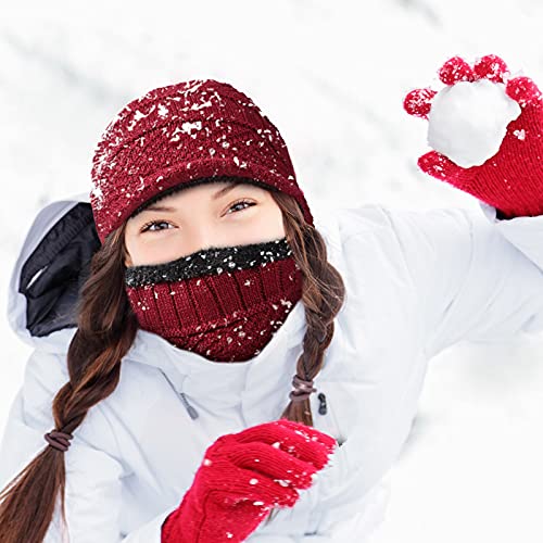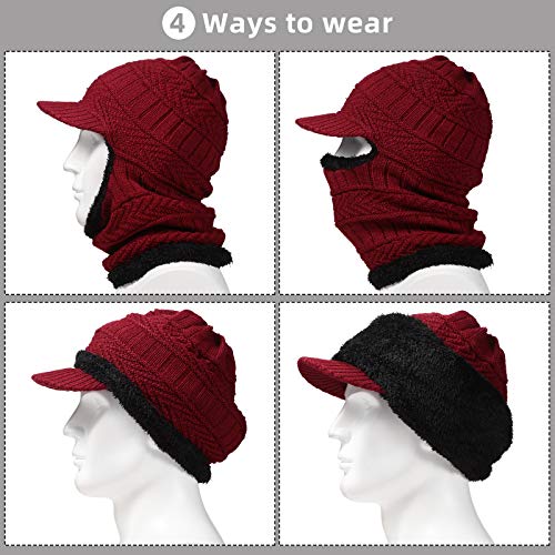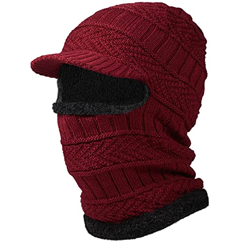 Syhood - سيهود قبعة بالاكلافا بيني محبوكة لتدفئة الرقبة في الشتاء غطاء للوجه للتزلج احمر نبيذي قطعة واحدة قياس واحد للبالغين من الجنسين الرجال