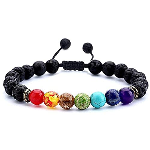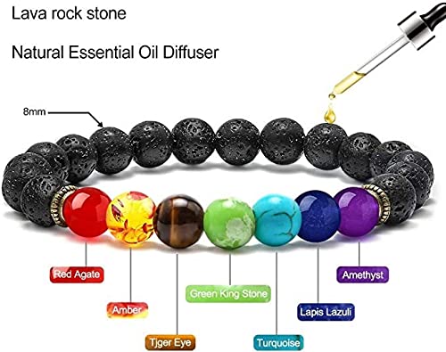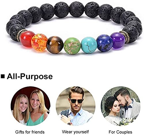 SYOSI - SYOSI Chakra Bracelet 7 Chakra 8mm Natural Stone Healing Bracelet Stress Relief Yoga Beads Anxiety Bracelet Aromatherapy Essential Oil Diffuser Bracelet Bangle for Womens Mens (1 Piece), Stone