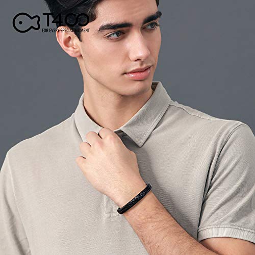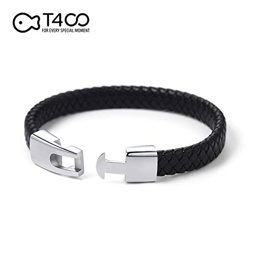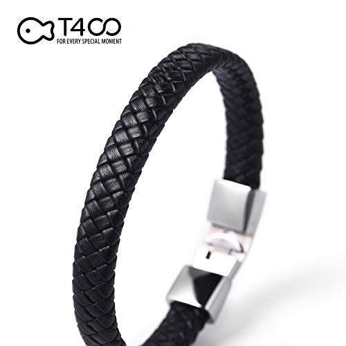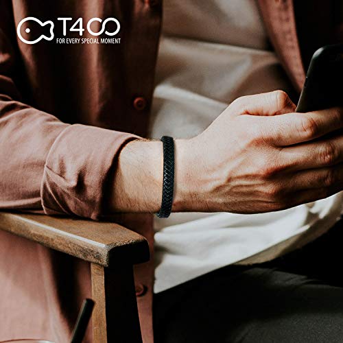 T400 - T400 Men's Leather Woven Wax Rope Cord Waterproof Braided Handmade Bracelet with Easy-Open Closure