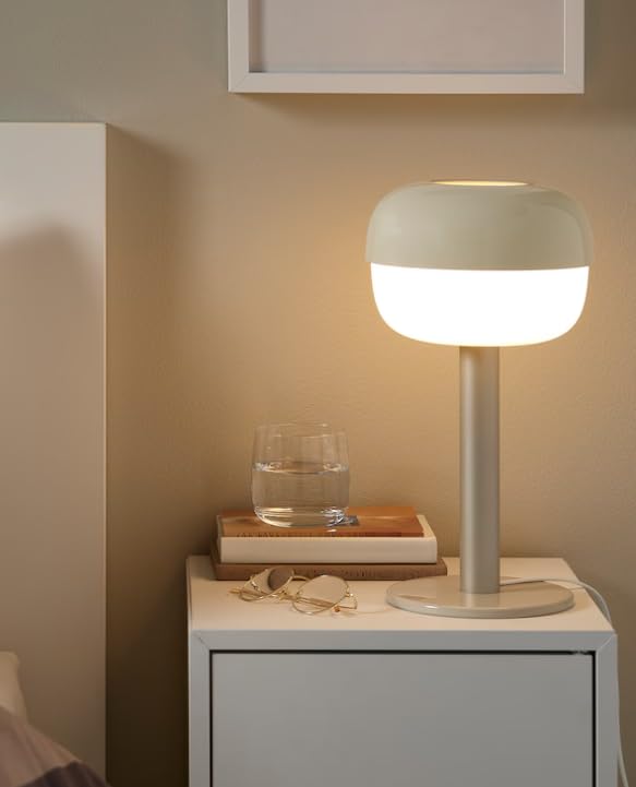 - MODERN DESIGN: Elegant table lamp featuring a mushroom-shaped shade in beige with a sleek metallic stem, perfect for contemporary home décor