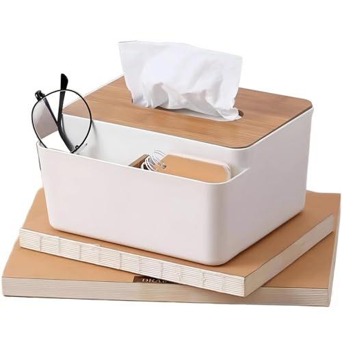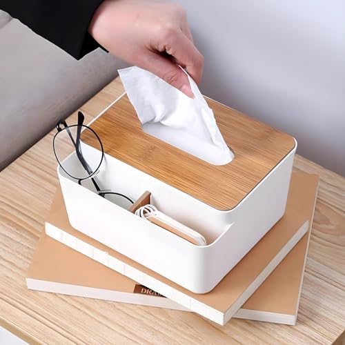 - Dual Functionality: This bamboo tissue holder serves as a tissue box with storage for additional rolls or items in a lower compartment.