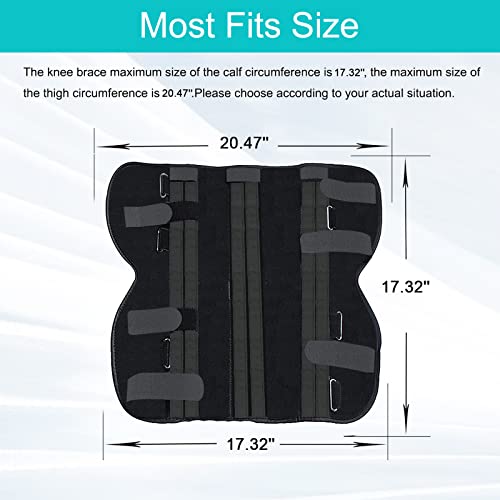 - ✅BETTER PAIN RELIEF AND INJURY SUPPORT: The construction of the immobilizer and the texture of the fabric ensure effective immobilization and strong comfortable support. Six removable aluminum stays maintain the leg and knee in a protected straight position. Six alternating adjustable straps allow to regulate the fit and the desired level of compression and support. Open patella design removes pressure from the patella.