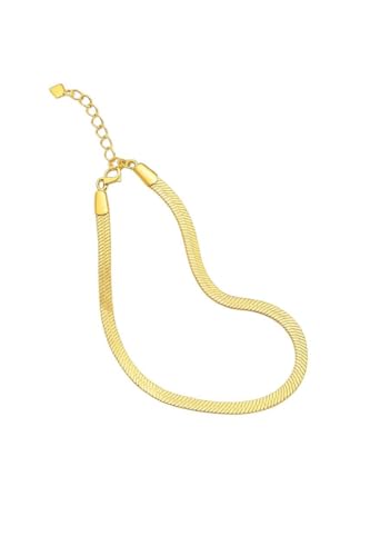 Tasiso - Tasiso Snake Bone Chain Link Bracelet for Women 18K Gold Plated Flat Herringbone Link Chain Bracelet Dainty Bracelet 8 Inches(L) 5MM(W)