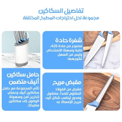 - Stainless steel handle for each knife, providing a secure and comfortable grip during use.
