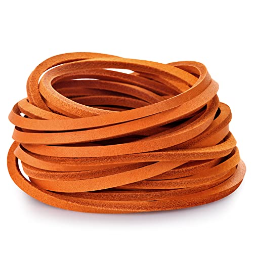 TeeLiy - شريط مسطح من الجلد الطبيعي بطول 3 ملم رباط جلد البقر المحبب بالكامل برتقالي_5 ياردة تيلي