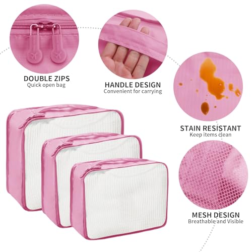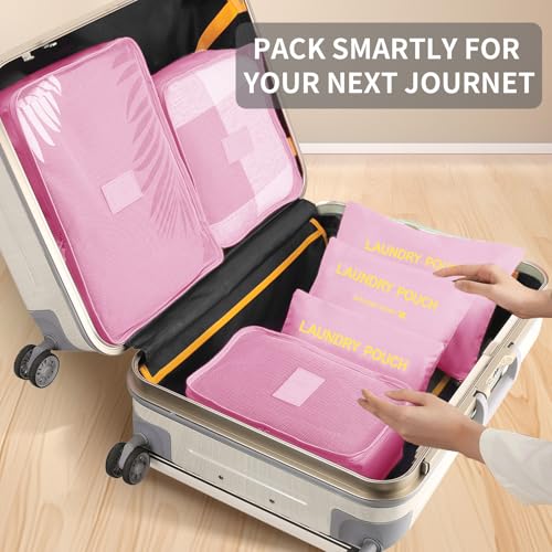 Teynewer - مكعبات منظمة لشنط السفر مجموعة شنط تعبئة متينة لضغط محتويات اكسسوارات للسفر من تينيور 6 قطع بينك نايلون زهري