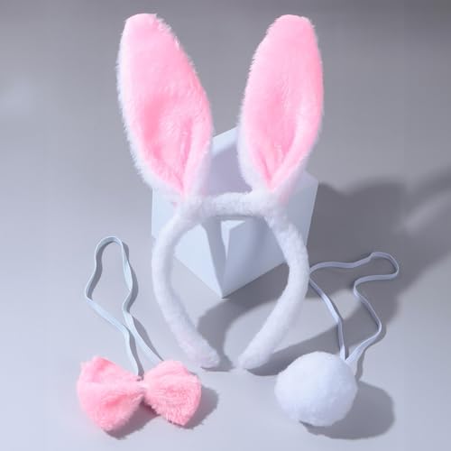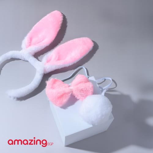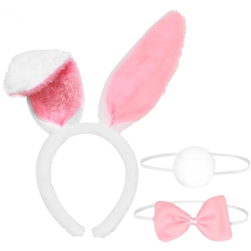 THE PACK - طوق رأس على شكل أذني أرنب من ذا باك، مجموعة زي أرنب عيد شم النسيم، ذيل أرنب وربطة عنق فيونكة، إكسسوارات زي حفلة شم النسيم للأطفال والكبار (3 قطع)