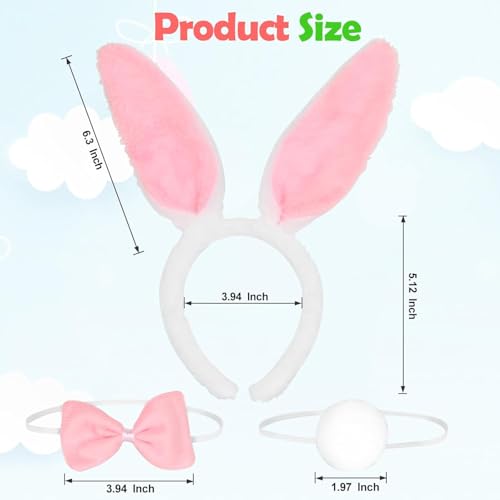 - ✨🐰 مجموعة كاملة: تتضمن ثلاث قطع أساسية - طوق رأس على شكل أذني أرنب قطيفة، وذيل أرنب منفوش، وربطة عنق فيونكة كلاسيكية لمجموعة أزياء شم النسيم الساحرة.