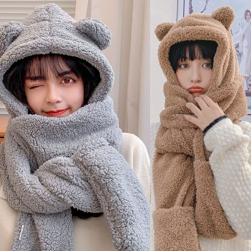 Generic - غطاء الراس من الفرو الكثيف وجيوب متدلي لتدفئة اليد