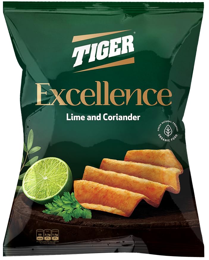Tiger Excellence - شيبسي تايجر اكسيلانس بنكهة الليمون والكزبرة من تايجر، 85-95 جرام