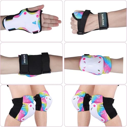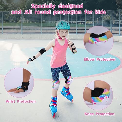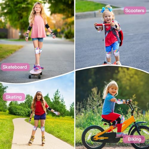 - Uitable for Multiple Sports: The kids knee and elbow pads is very suitable for scooter, skateboarding, Inline skatings, roller skating and other outdoor sports; The skate pads for kids keep our children away from hurt when they enjoy the joy of sports