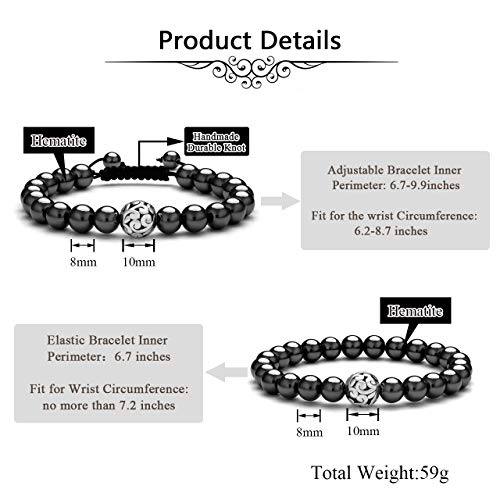 Top Plaza - Top Plaza 2 Pcs Healing Crystal Stone Bead Elastic Stretch Bracelet Adjustable Gemstone Beaded Braided Bracelets Yoga Meditation Reiki Balancing Quartz Jewelry for Womens Mens Couples, Stone,