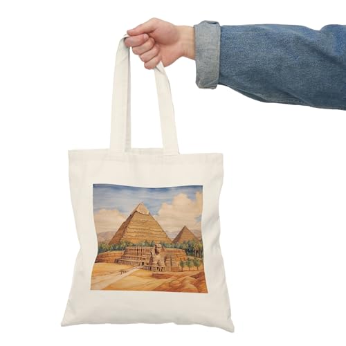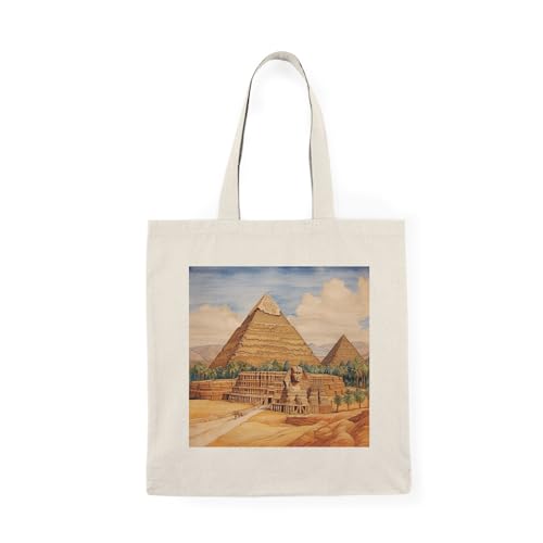 Generic - شنطة يد كبيرة توت - شنطة يد كبيرة توت بسوستة بتصميم اهرامات مصر القديمة، لون بيج