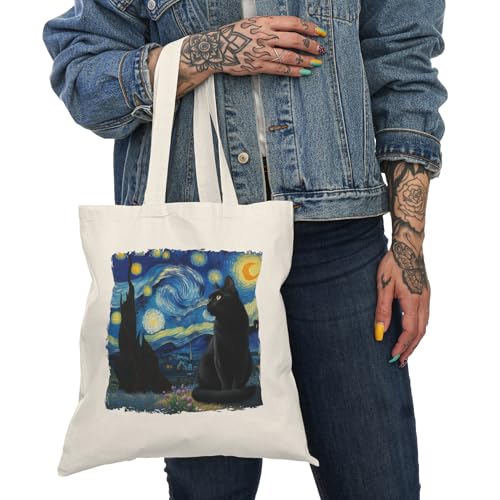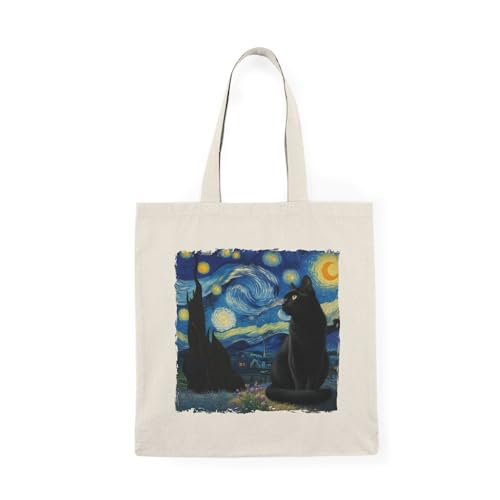 Generic - Tote Bag - Beige Canvas Zipper Bag Black Cat Starry Night Tote Bag With Zipper
