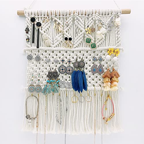 TOYAFUN - حامل مجوهرات معلق لتنظيم المجوهرات من تويافان - منظم يثبت على الحائط للقلائد والاساور والاقراط والخواتم الخزانة والحائط والباب قطن بيج