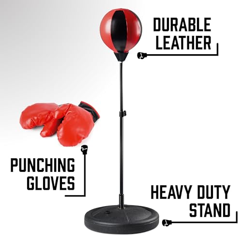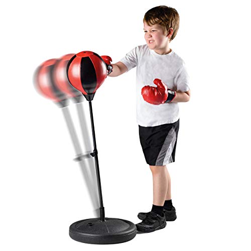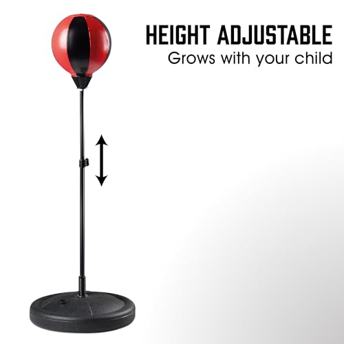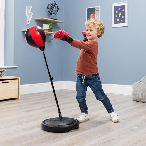 - مجموعة ملاكمة كاملة: تتميز حقيبة الملاكمة المتوسطة القائمة بذاتها بحامل قوي ومتين من أجل سرعة سريعة وقوية. سيعزز هذا التمرين ردود فعل طفلك وثقته حيث تطور هذه اللعبة المثيرة مهارات التنسيق بين اليد والعين