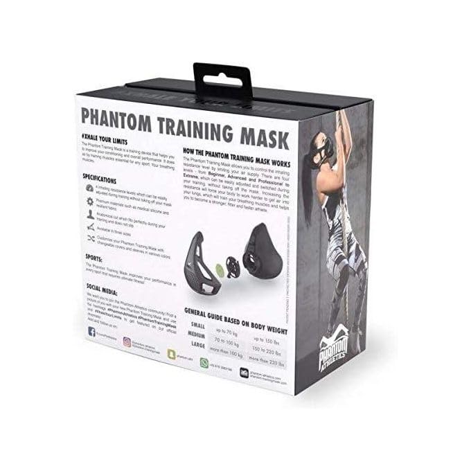 - Training Mask is an innovative mask for training respiratory muscles and improve fitness during sports, it prevents premature feeling of fatigue and reduces heart rate.Individual Respiratory Regulation System for difficulty 4 levels Anatomical fit for a perfect fit.Breathable and sweat-wicking strap for comfortable wearing wearing the mask Cover and sleeves are interchangeable Easy to clean, Cover and Control System Made of durable nylon material, mask body is made of medical silicone You can easily find out the right size for you by comparing your body weight with our size recommendations