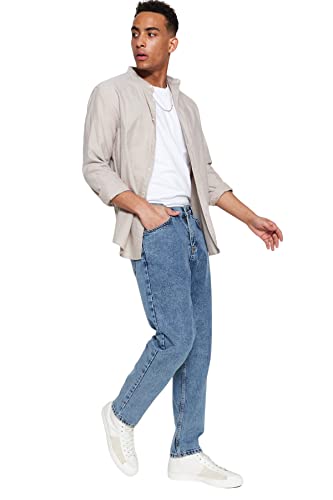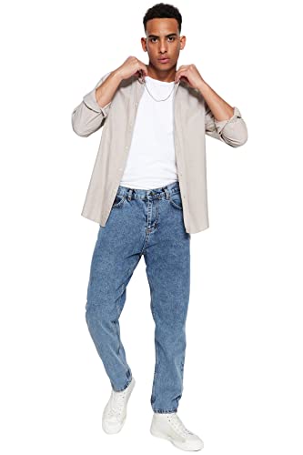 Trendyol - بنطلون جينز بقصة مريحة للرجال من ترنديول بلون أزرق، TMNSS22JE0227