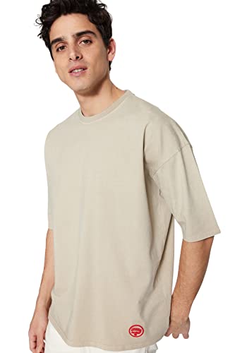 Trendyol - تيشرت من القطن بنسبة 100% بمقاس كبير وقصة واسعة باهتة طراز TMNSS23TS00153 للرجال من ترنديول (عبوة من قطعة واحدة)