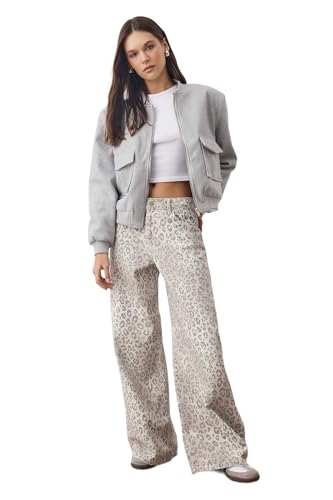 Trendyol - Trendyol Multi-Colored Regular Waist Leopard Print Wide Leg Jeans Twoaw26Je00024,Multicolored 36