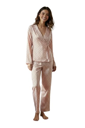 Trendyol - Trendyol Powder Heart Tie Detailed Viscose Woven Pajamas Set Thmaw22Pt0300,Powder 38