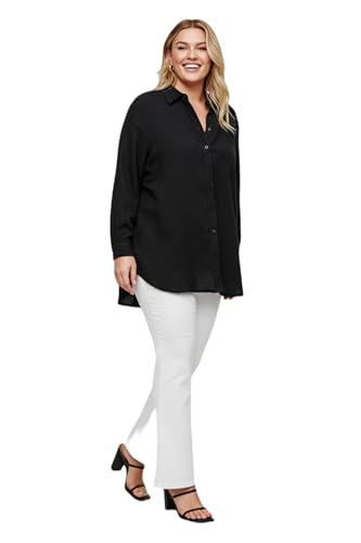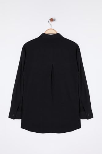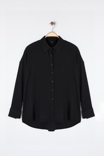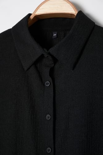 Trendyol - Trendyol Woman Black Regular Fit Shirt Collar Crepe Textured Fabric Knit Flexible Plus Size Shirt TBBSS25AX00001 Plus Size Shirt